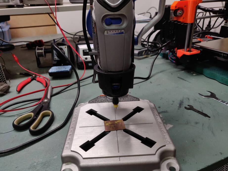 After removing the cured film with acetone, it was time to drill. It's not the best setup, but it works, and it only has destroyed my smallest bits so far after around 80 holes drilled. Ordering a Chinese drill motor with supposedly better bearings to rig up to the press for better run-out.