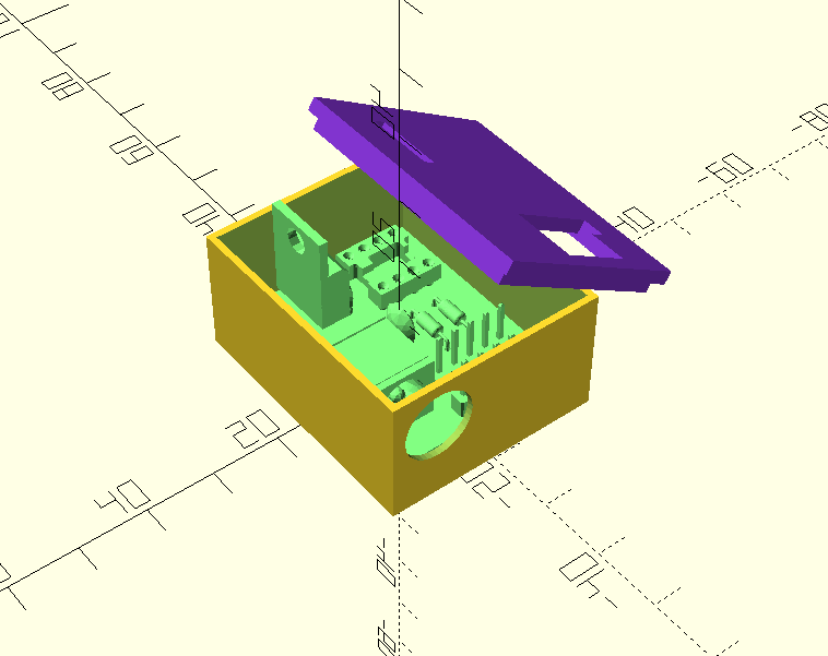 Exported 3d board model using StepUp freecad addon, designed a case in OpenSCAD to fit the board